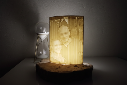Le jour, votre lampe est un beau cadre discret. La nuit, allumez-la et regardez votre souvenir prendre vie — chaque détail révélé par la lumière, comme pour la première fois.